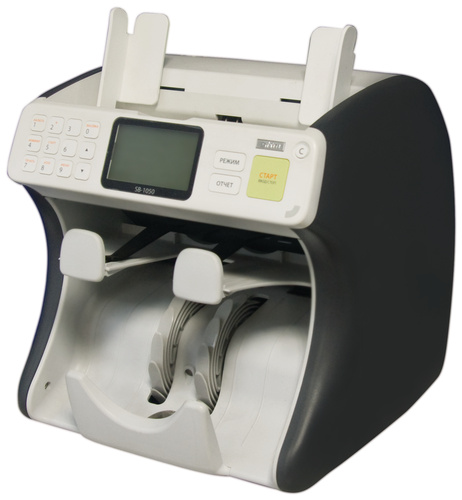 Самый экономичный 2х-карманный счетчик банкнот SBM SB-1050 с функцией сортировки для обработки средних и малых объемов наличности в операционных кассах банка.
